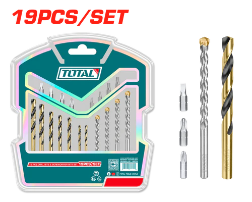 19-piece set of drill bits and screwdriver heads